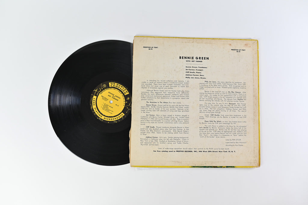 NOTES: 1956 US pressing. Deep groove. Mono. RVG in deadwax on both sides. From discogs regarding this pressing: "This edition has 446 West 50th labels and back cover address. Both sides have deep groove and RVG etched. Front cover shows kakabushi frame. Although the labels say “custom molded by Plastylite”, this pressing does not have plastylite P. It is not flat edge, unlike the other 1956 release. Side B label has small center ring, seen in one of the photos. This small center ring is not present on the flat edge disc. This must be a second pressing with leftover labels, used at a different pressing plant."