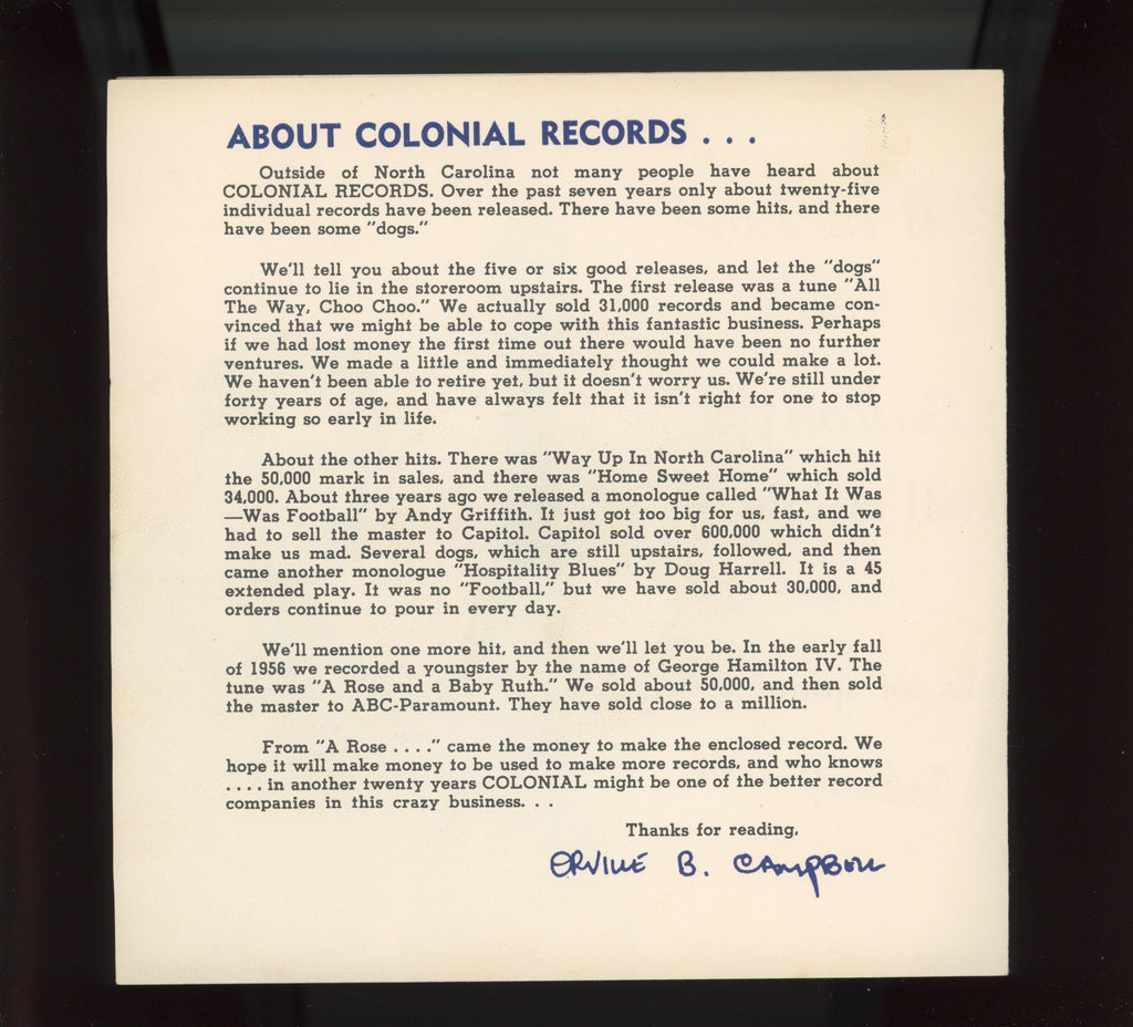 NOTES: Also comes with Johnny Dee customized Colonial sleeve